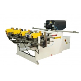 Çift pervaz kesme ve L yeri kertme makinası.• Pnömatik hareketli ayarlama sistemi,• Pnömatik silindirler ile güvenli iş malzemesi sabitlemesi,• Maksimum 2.2 metreye kadar manuel pozisyon kontrol sistemi ile ölçü ayarlama olanağı,• Çift el kumanda kontrol sistemi bulunmaktadır.• Otomatik pervaz boşaltma sistemiTEKNİK ÖZELLİKLERİ..